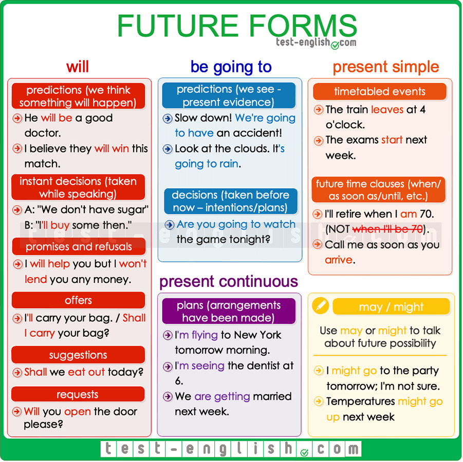 Image source: Future forms – will, be going to, present continuous - Test-English